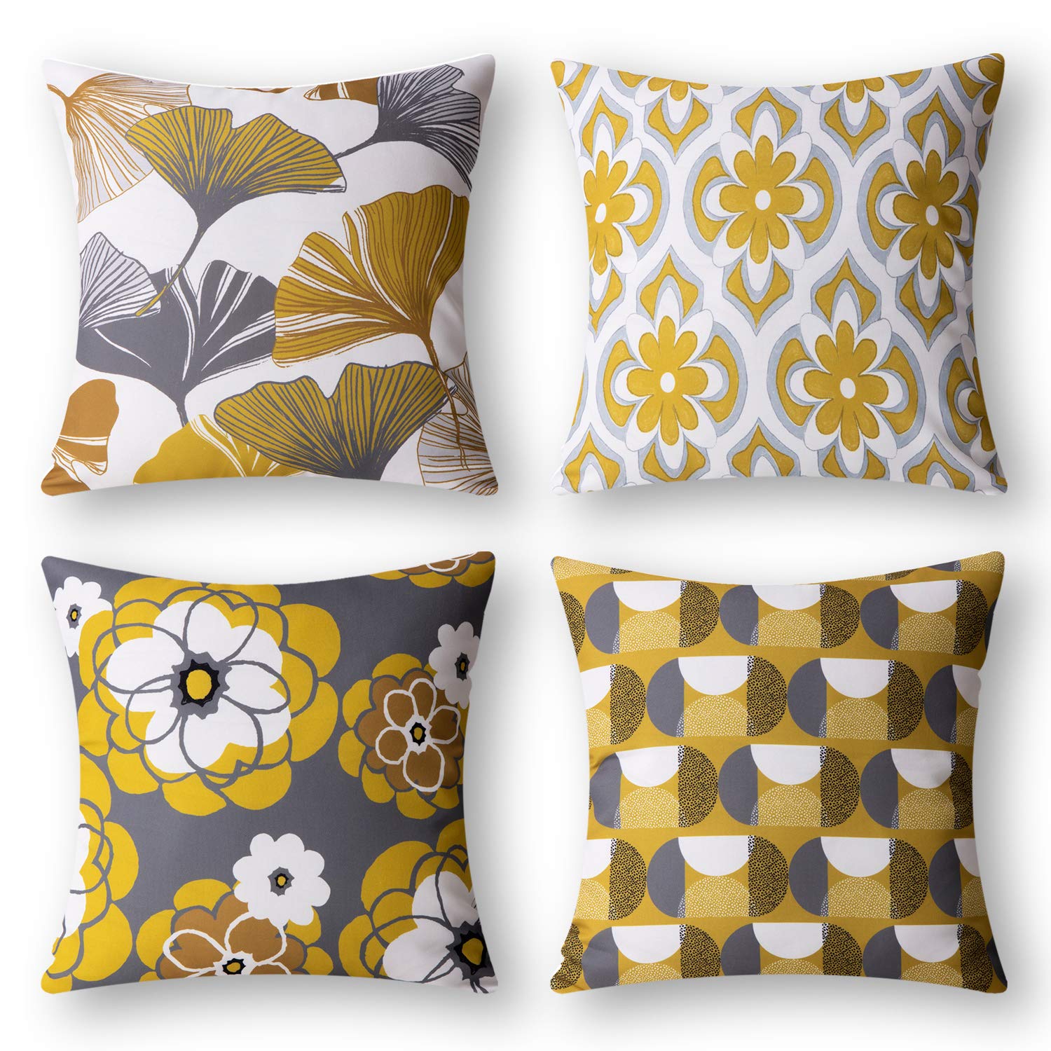 4PCS 45×45 Yellow Gray Geometric Pattern Petal Linen Pillowcases Set for Sofa Home Decoration